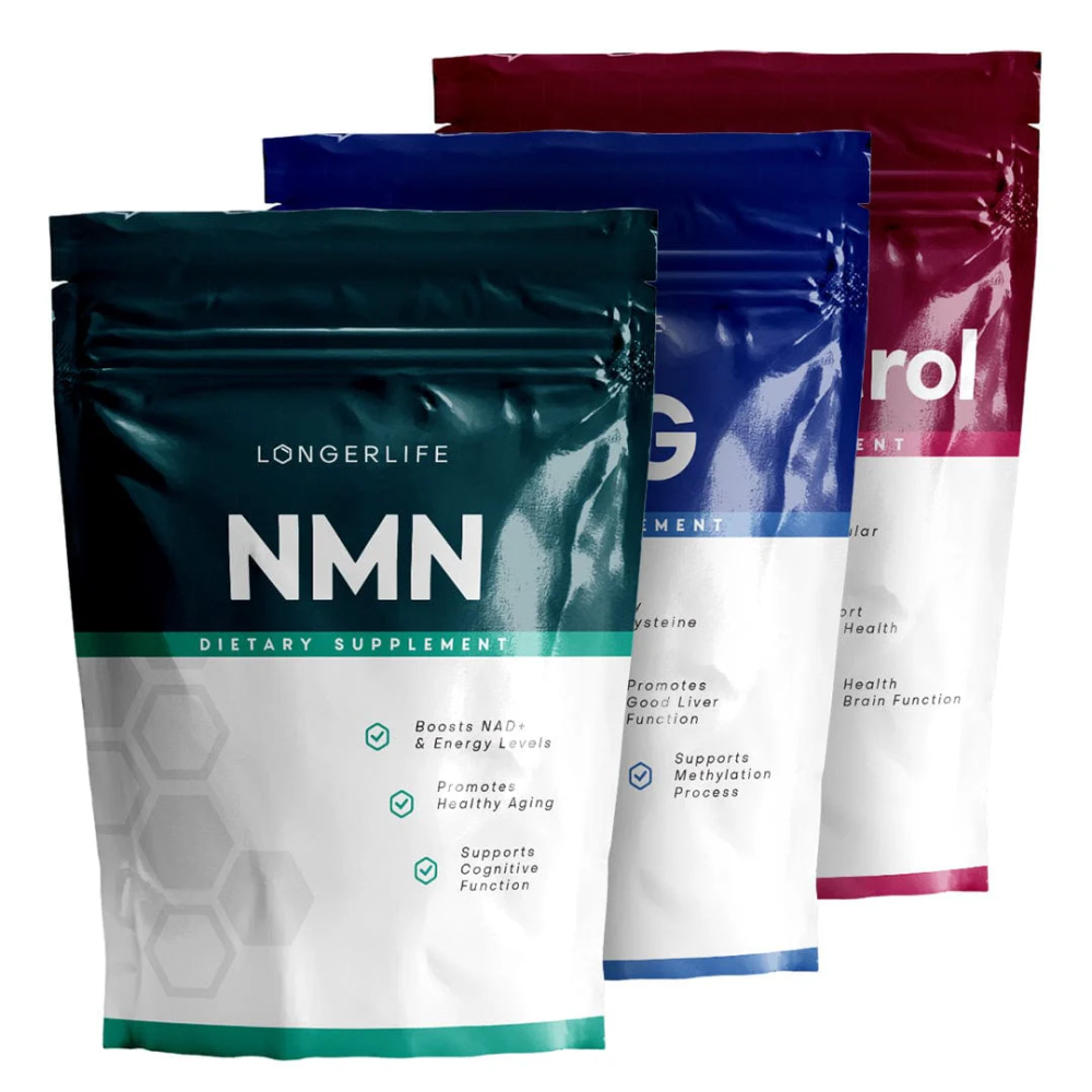 Denne pakken inneholder 2 måneders forbruk av NMN, RESVERATROL og TMG. FULLPRIS 2444,- Leveres hjem til din postkasse (Gratis levering)